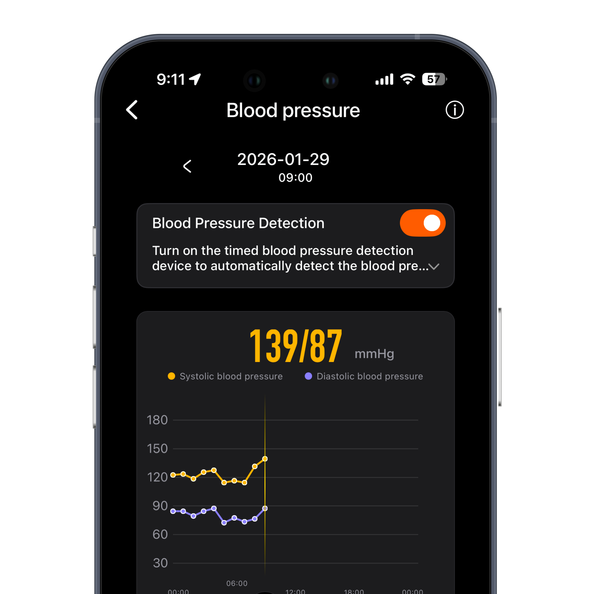 Automatic blood pressure readings throughout the day. Track trends, set alerts, and monitor in real-time.